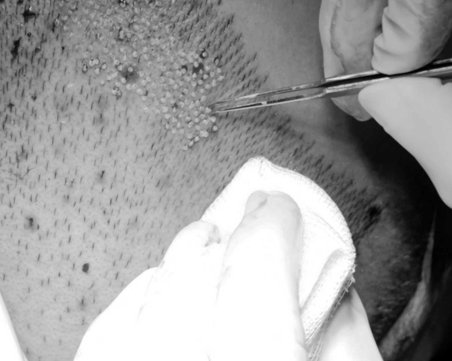 Transplantation of Hair Grafts in Ultra FUE Technique